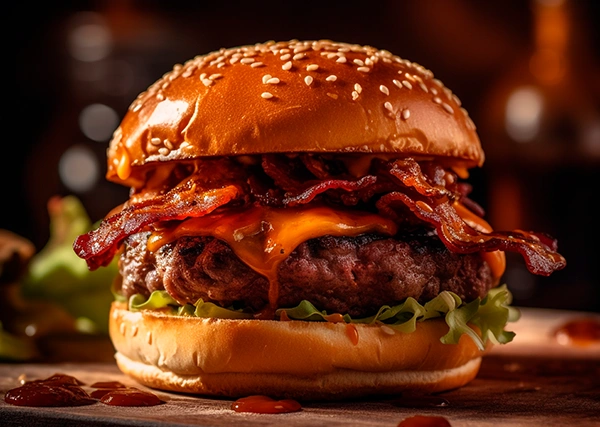 Hambúrguer artesanal com blend de carne, queijo cheddar, alface, tomate e molho especial.